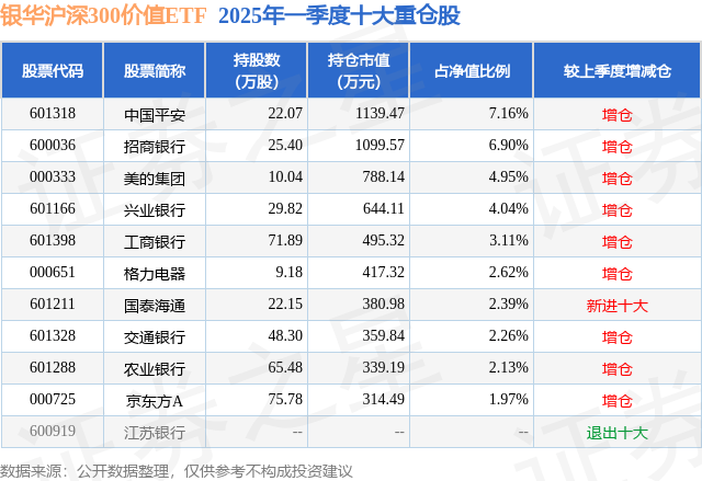 本站消息,日前银华沪深300价值ETF基金公布一季报散户配资,2025年一季度最新规模1.59亿元,季度净值涨幅为-1.85%。
